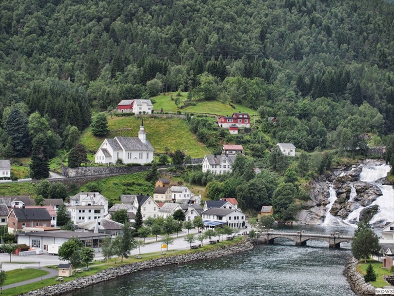 A Helleslyt on peut admirer la belle cascade, la toute petite église, ce village est déserté l'hiver, étant coupé de tout.